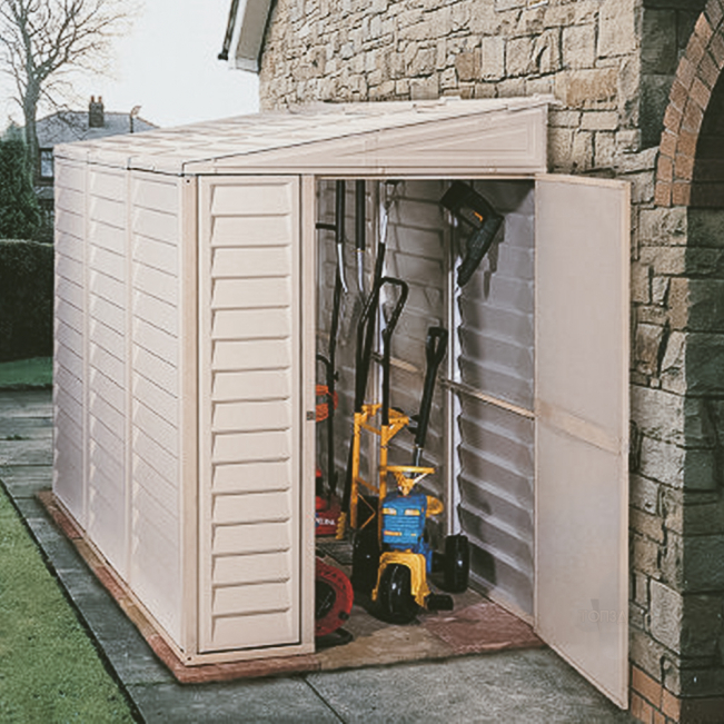 Виниловый хозяйственный сарай - является замечательным решением для семьи, которой не хватает еще чуть-чуть места, чтобы хранить свои вещи. Эта мобильная постройка очень компактна и легко влезет на любой участок в какой-нибудь укромный уголок. Несмотря на свои скромные размеры, домик имеет внушительный объем, а армированный каркас обеспечивают высокую прочность. Такая конструкция позволяет переоборудовать пластиковый хозблок по вашему вкусу - повесить полки, разместить инструменты. Также он может использоваться в качестве детского игрового дома или малой мастерской.